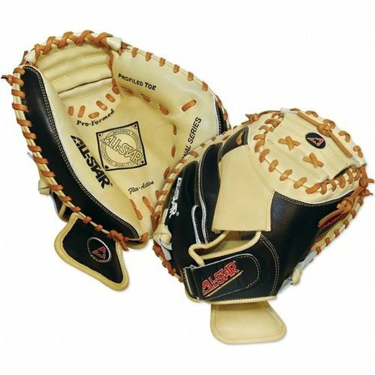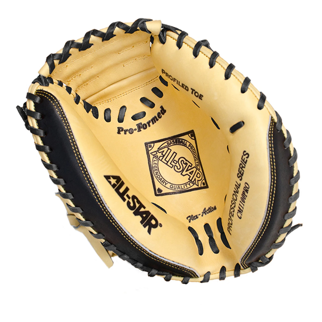 All Star CM1100PRO 31.5 inch Catchers Mitt Pro Grade (Right Hand Throw) : The CM1100PRO is a professional grade mitt designed for smaller hands. It features soft leather for faster break-in and a wide heel channel to make it super easy for youth catchers to close. Black and tan leather mimics the adult pro level mitt and uses similar cutting patterns. Deep pockets, Flex Action crease, velcro closure, and wrist protector included.