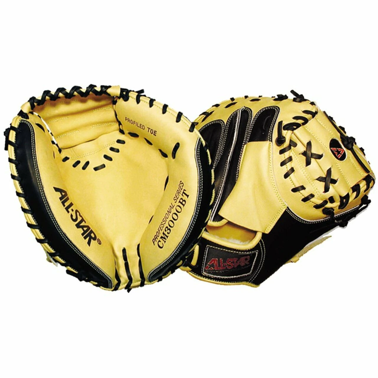 The All Star CM3000 Series Catcher’s mitts are the mitt’s of choice for many professional and amateur baseball catchers. Exclusive Japanese tanned steer hide allows for fast break in and extended life. Only the finest materials and hand craftsmanship are used to make these exceptional All Star Catcher’s mitts. The soft tan leather pocket allows for great feel and gives the ball that extra POP which pitchers love to hear. The black leather backing is stiffer, and gives the mitt the right amount of support and increases its life. Each catcher’s mitt is a work of art, individually hand made. The professional players who choose this mitt are: Mike Napoli (Anaheim), Greg Tatum (Baltimore), Steve Lerud (Baltimore), Jason Varitek (Boston), Luis Exposito (Boston), Mark Wagner (Boston), Lou Marson (Cleveland), Wyatt Torregas (Cleveland), Bryan Pena (Kansas City), Ed Bellorin (Kansas City), Josh Thole (New York), Mike Rivera (New York), Rob Johnson (Seattle), Max Ramirez (Texas), Bengie Molina (Texas), Raul Chavez (Toronto), Jose Molina (Toronto), Koyie Hill (Chicago), Michael McKenry (Colorado), AJ Ellis (Los Angeles), George Kottaras (Milwaukee), Jonathan Lucroy (Milwaukee), Jesus Flores (Washington), Jamie Burke (Washington), Omir Santos (New York), Brian Schneider (Philadelphia) All Star CM3000BT Pro Elite Catcher’s Mitt 35″ Features: 35″ Catcher’s Pattern Exclusive Japanese tanned steer hide gives faster break in and extended life Soft tan leather pocket gives great feel and extra POP Black leather backing Individually hand made 1 year manufacturer’s warranty