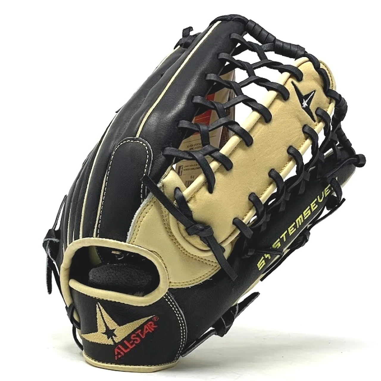 All Star System Seven FGS7-OF Baseball Glove 12.5 Inch (Right Handed Throw) : Designed with the same high quality leather which made the CM3000 series catching mitts so popular, these System Seven fielding gloves have a similar personality: Fast break in and long lasting. High quality selection of Japanese Maruhashi black and tan leather. By design, All Star’s tan leather breaks in fast and forms a great pocket. All Star lines the back of our gloves with black leather because it is more durable and stiffer, providing support for a long lasting glove. Pro Guard Padding provides a thin layer of extra padding in the palm area of the glove which helps kill the sting of a mis-caught ball. Pro Guard Padding is thin enough to still have enough feeling, so that you know exactly where the ball is located. System Seven fielding gloves are designed for specific position’s needs. These gloves feel like an extension of your arm, empowering you with a long enough reach, maximum control, and complete confidence.